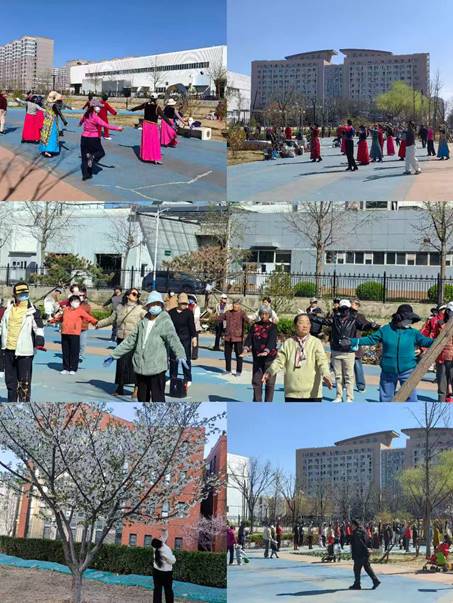 最開心的當屬退出職場、精力旺盛的大媽們。她們穿紅著綠、涂脂抹粉、精心妝飾,欲與春花媲美。她們成群結(jié)隊,分團結(jié)伙,或輕歌,或曼舞,或八段錦。她們放飛心情,活動筋骨、愉悅身心,為美麗的春天助興添彩。