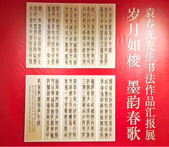 其作品多次在全國書展中斬獲大獎(jiǎng),曾在國內(nèi)多地及日本、韓國、泰國、法國等海外地區(qū)舉辦個(gè)展,部分作品被永久館藏。此外,他還出版了《袁春光書法集》《翰墨情》等多部書法專著,以及《悠悠路情》《雪落鄉(xiāng)村》等十余部詩歌散文集,堪稱文學(xué)與書法雙馨的藝術(shù)家。本次展覽集中展出袁春光近兩年來精心創(chuàng)作的近百幅書法作品,題材豐富多元,篆書、隸書、行書、草書等書體應(yīng)有盡有。作品既蘊(yùn)含深厚的傳統(tǒng)底蘊(yùn),又彰顯鮮明的個(gè)人風(fēng)格,筆法老辣蒼勁,章法嚴(yán)謹(jǐn)有序,墨韻生動(dòng)盎然,每一幅皆為藝術(shù)珍品。觀眾置身展廳,既能領(lǐng)略篆書的古樸典雅、隸書的蠶頭燕尾,亦可感受行書的流暢靈動(dòng)、草書的狂放不羈,沉浸式體會(huì)中國書法藝術(shù)的博大精深。